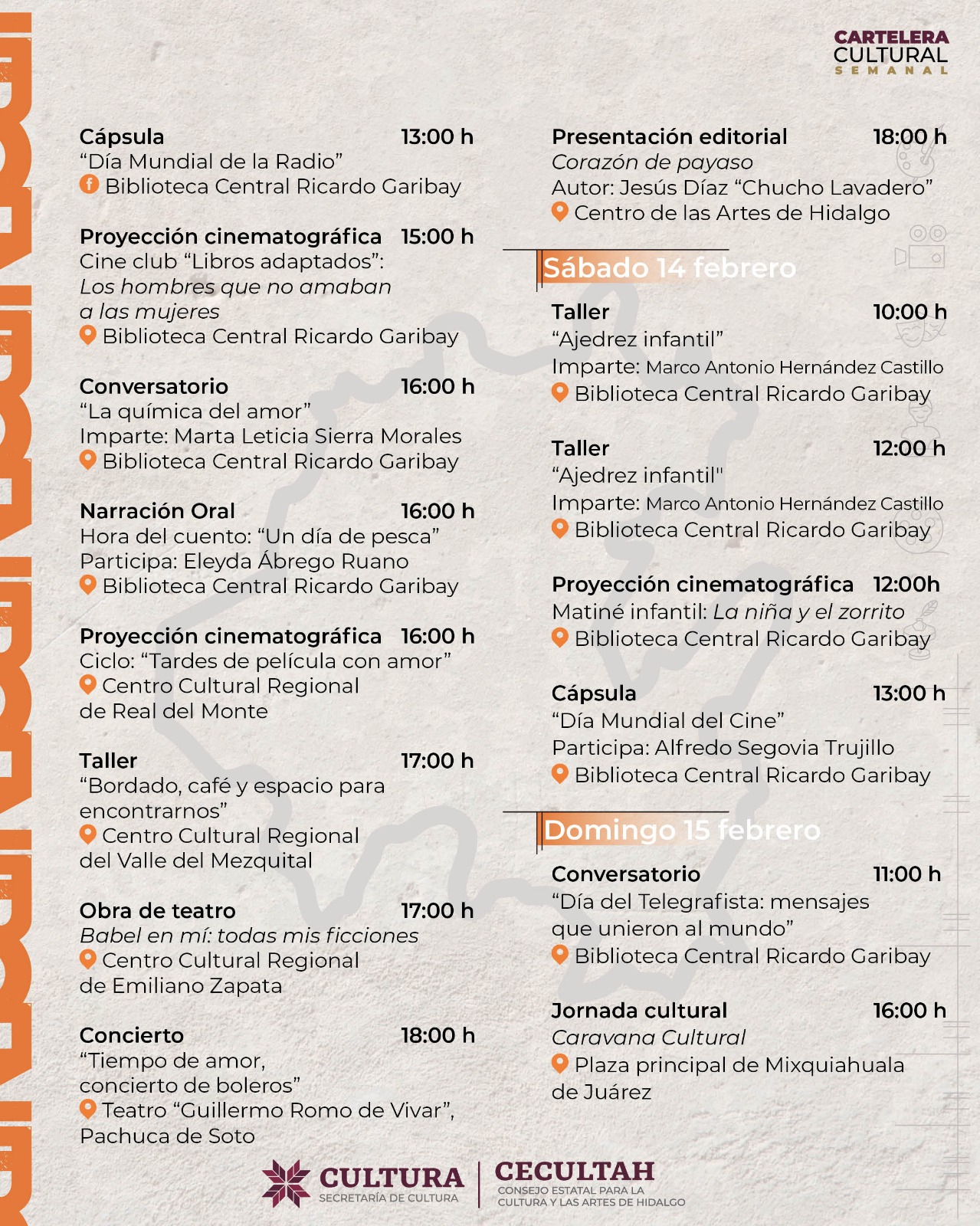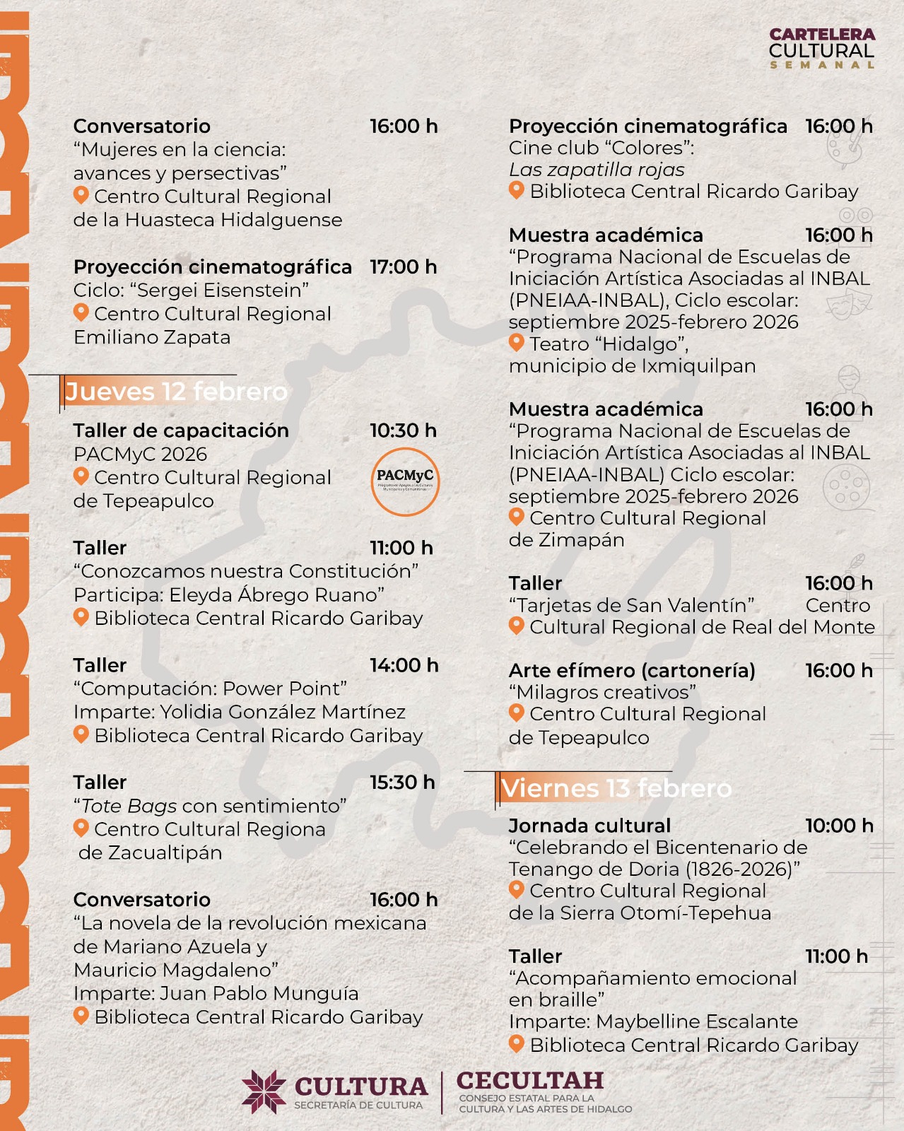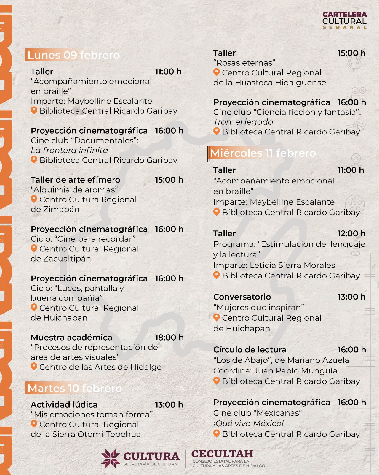 Cartelera cultural del 09 al 15 de febrero 2026