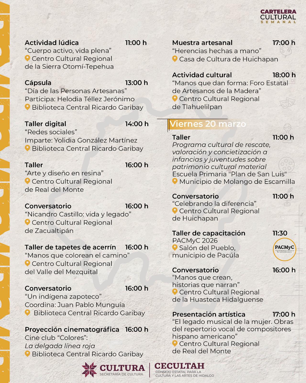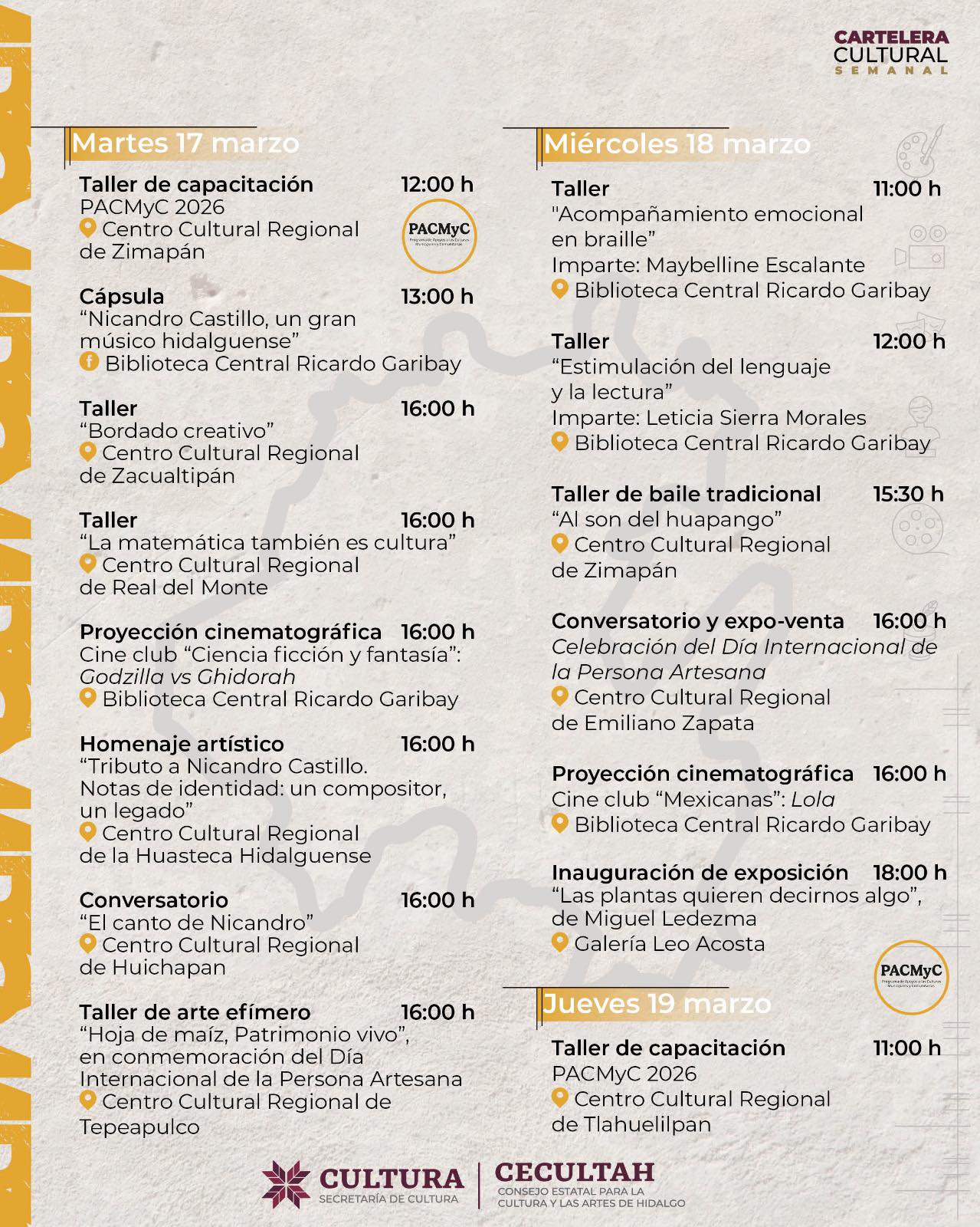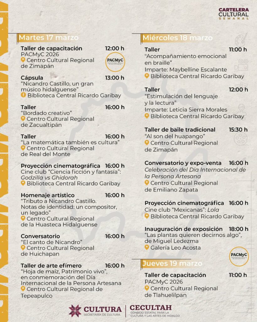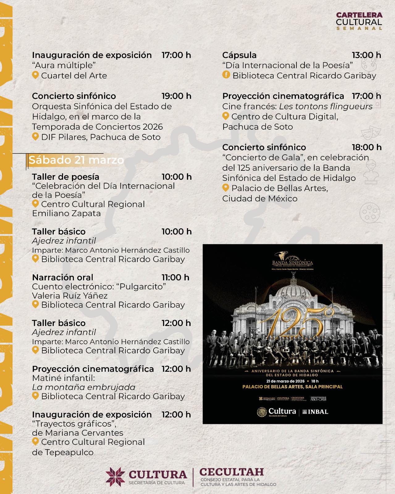 Cartelera cultural del 17 al 22 de marzo 2026