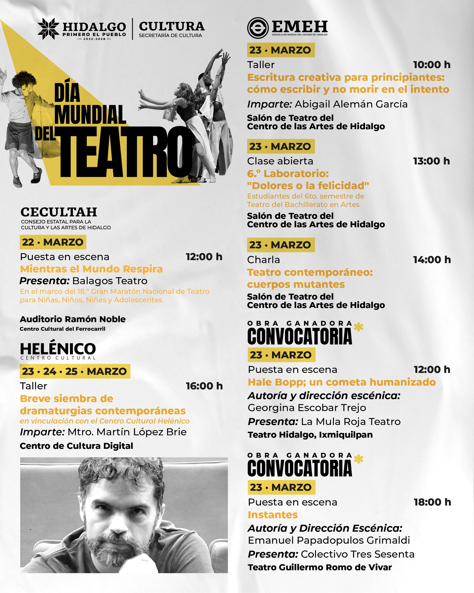 Mar 22 marzo 22 - 12:00 pm a marzo 27 - 8:00 pm CST Día Mundial del Teatro 2026 Varias sedes Hidalgo Event Details Get Directions