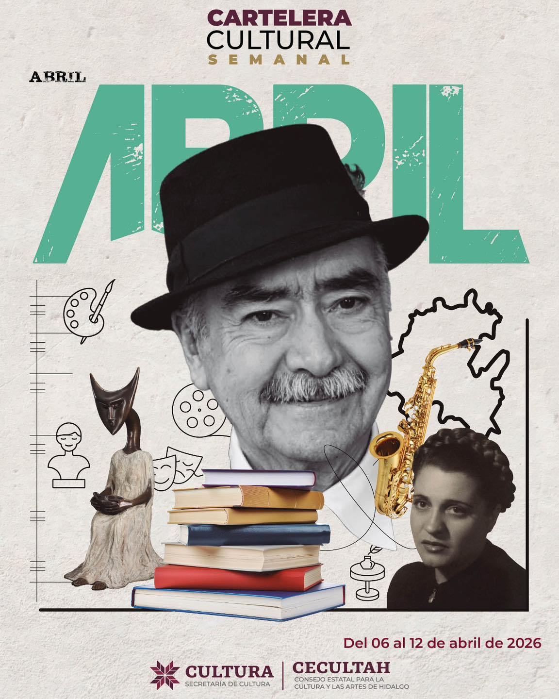 abril 6 - 8:00 am a abril 12 - 7:00 pm CST Cartelera cultural del 06 al 12 de abril 2026 Varias sedes Hidalgo